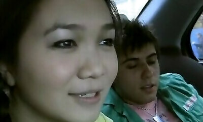 Asian girl gets torn up in the car