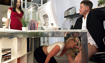l'assistante blonde se fait botter les fesses par le chef