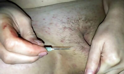 Towheaded bimbo screams with pain as her pubis was being tattooed