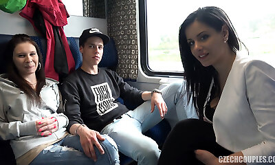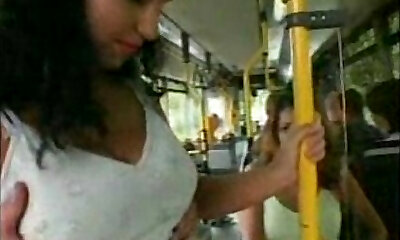 Busty, Asian brunette is getting harassed in a public buss, but she likes it a bunch